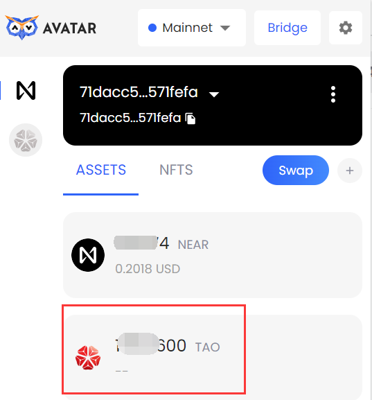 # Deposit $TAO to Avatar Wallet