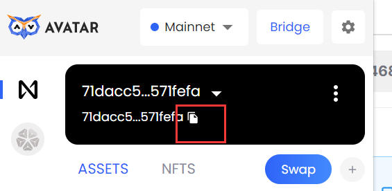### **3/Check your Avatar wallet assets**